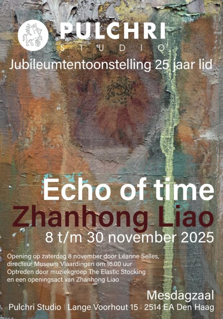 Zhanhong Liao conveys a personal yet widely relatable visual narrative with freedom and craftsmanship, expressed through a wide range of techniques: book objects, collages, abstract paintings, realistic portraits, watercolors, photography, performance, video and digital works, as well as both small- and large-scale three-dimensional pieces.Her retrospective exhibition Echo of Time, marking 25 years of membership at Pulchri Studio and her 60th birthday, will be on view in the Mesdag Gallery of Pulchri Studio from 8 to 30 November 2025.